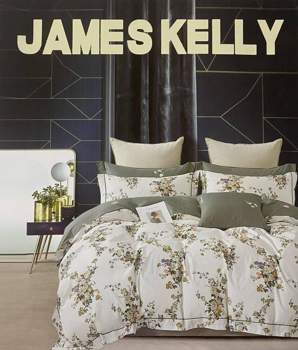 Комплект постільної білизни JAMES KELLY оливкового з білим кольору з квітковим принтом (Китай)