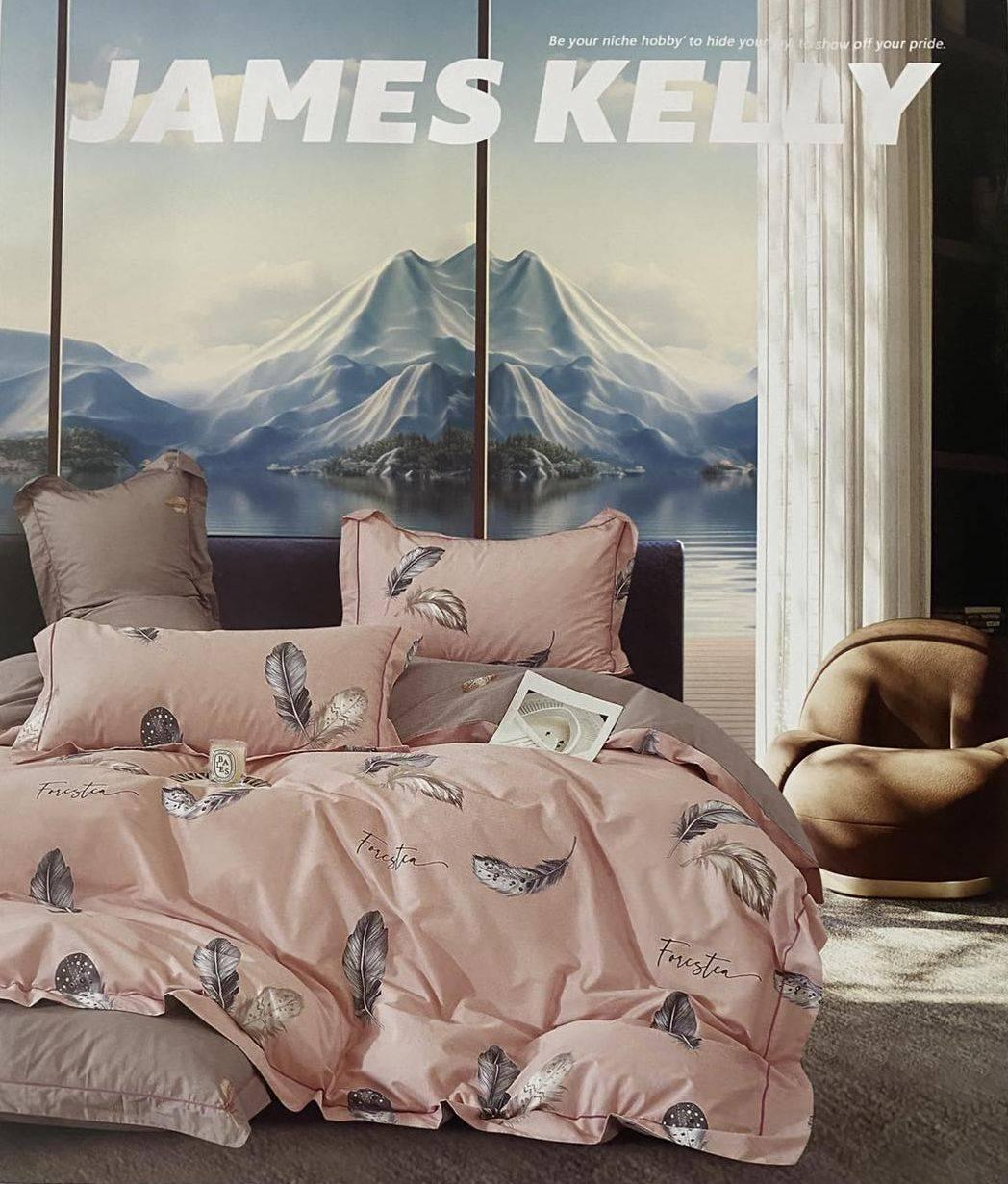Комплект постільної білизни JAMES KELLY пудрового кольору з принтом пір’я (Китай)